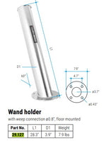 Soporte para varilla Mosmatic 29.127 – Montaje en suelo, 28,3", conexión de drenaje de 0,8"