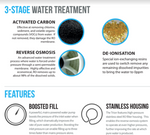 • Tratamiento de agua en 3 etapas: