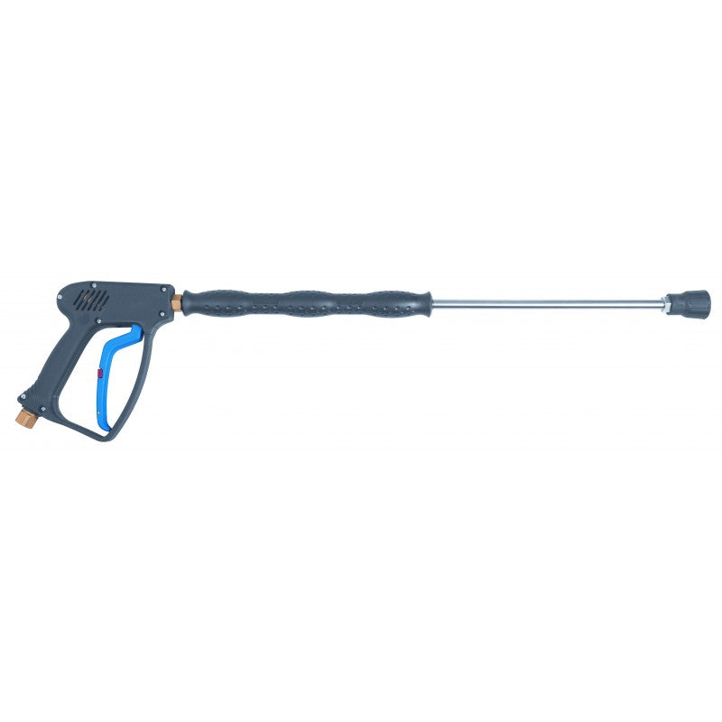 Son long corps de lance permet de nettoyer de grandes surfaces ou des surfaces surélevées sans compromettre le confort ni la maniabilité. Le manche droit de 81 cm (32 po) améliore la prise en main lors d'une utilisation prolongée, tandis que le filetage usiné avec précision garantit des connexions sûres et sans fuite.